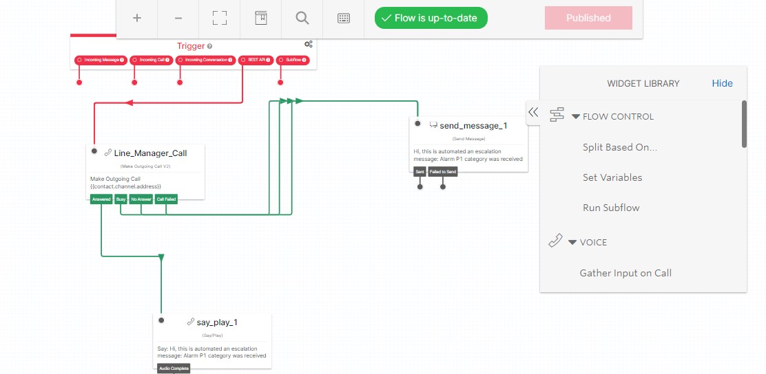 minutes then the system send a phone call to the line manager using Twilio Stuio Flow REST API. check
