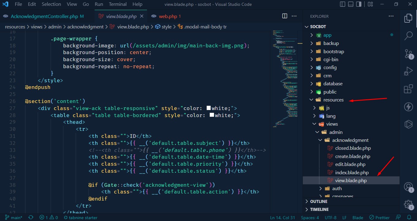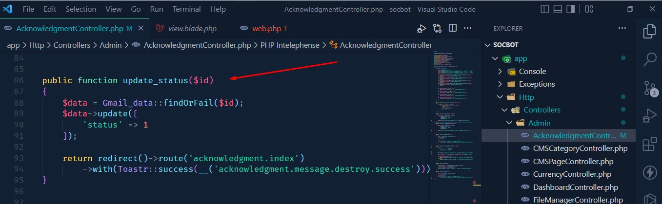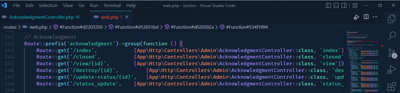 Laravel define all links in web.php file. you can see the file to check the Acknowledgment routes.