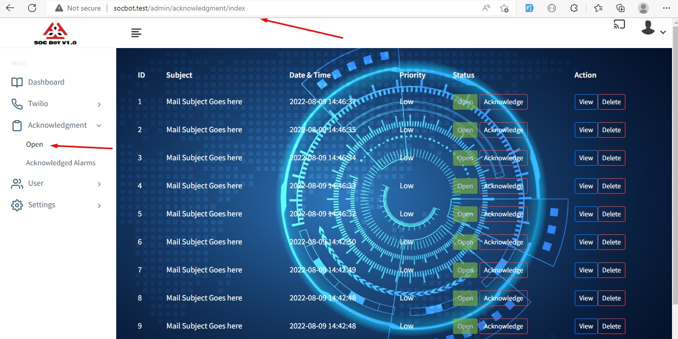 and password: root- Now you can open the the site link like http://socbot.test into your browser
