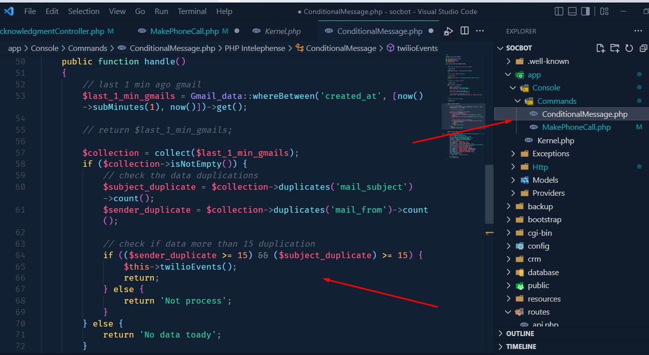 php artisan make:command ConditionalMessage - Now you can see the a file created into the