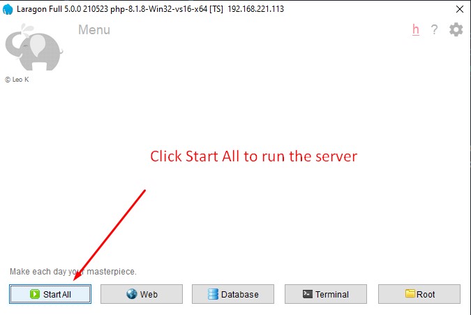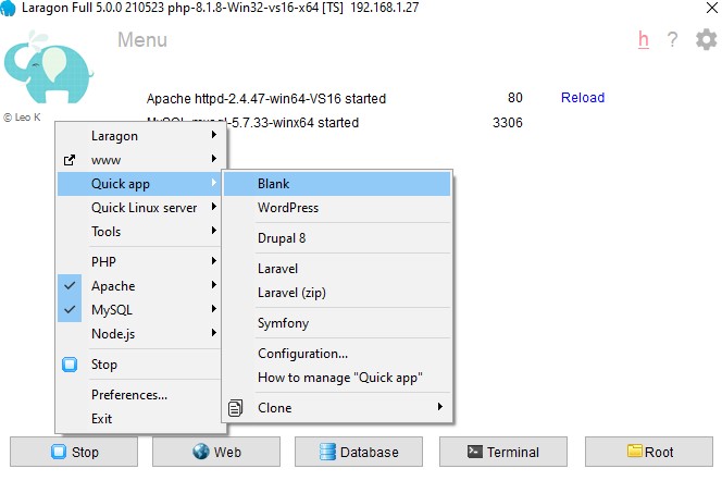 After successfully setup Largon and phpmyadmin we have to create a blank project inside Laragon and Largon